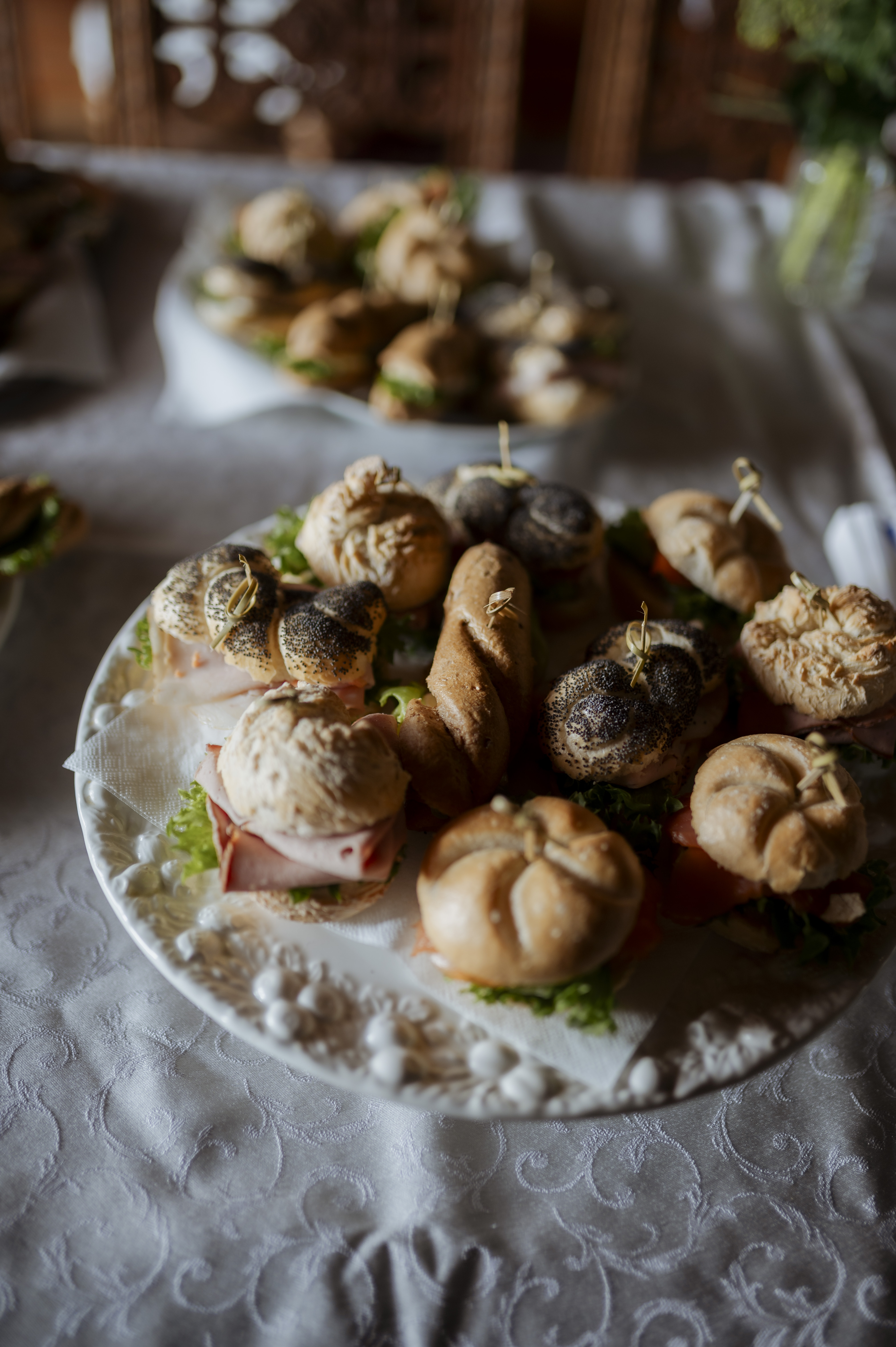 Im Speisezimmer oder auf der Terrasse besteht die Möglichkeit eine Agape mit Getränken (z.B.Sekt) und Brötchen zu veranstalten. Leider ist darüber hinaus kein Essen möglich.